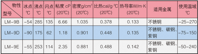 LM-9系列冰河冷媒由多官能團(tuán)有機物改性而成,外觀為淺色液體,不溶于水,可燃。具有粘度低、揮發(fā)性小、防銹性好、化學(xué)性質(zhì)穩(wěn)定等特點。