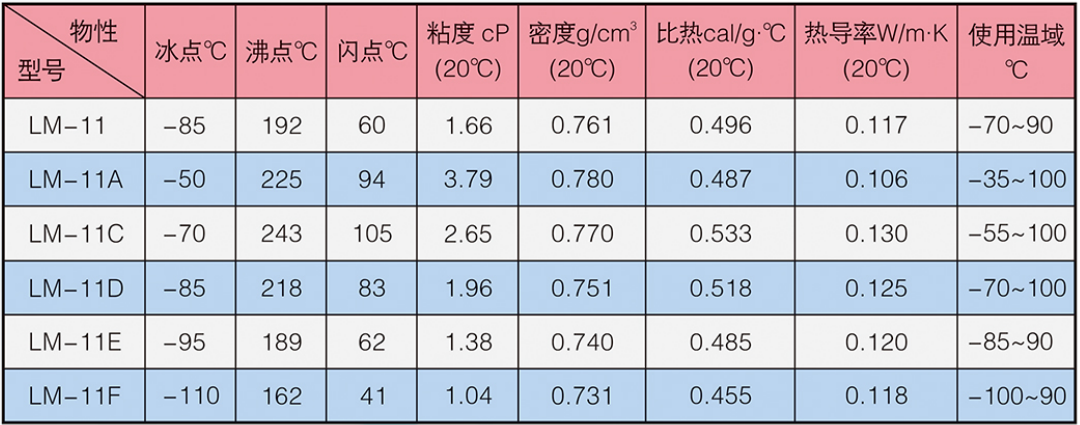 LM-11系列冰河冷媒由高級(jí)烷烴改性而成,外觀為淺色液體,不溶于水,低毒,低粘度,化學(xué)性質(zhì)穩(wěn)定,可燃。