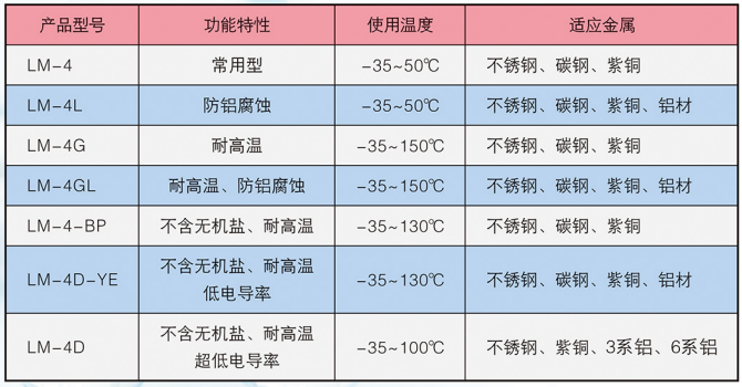 LM-4系列冰河冷媒具有低毒,不易燃,比熱大,安全穩定,載冷能力強等優點。對碳鋼、不銹鋼、紫銅等金屬防銹性能優良。在不同濃度條件下,可以在很寬的溫度范圍內,廣泛應用于各種制冷系統。使用時,根據具體工藝溫度要求單獨使用或用水稀釋成適當濃度后應用。如與醇類載冷劑混合使用,應加入適量的冰河冷媒增效劑。其中: