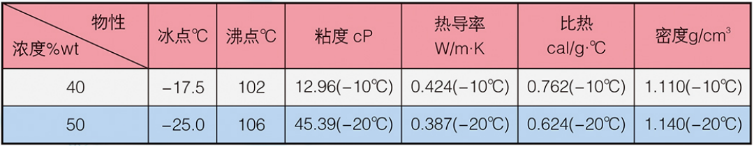 LM-4B型冰河冷媒由改性三元醇構(gòu)成,主要添加劑包括防腐劑,防霉劑,增溶劑,穩(wěn)定劑等。外觀為淺色或無(wú)色液體。安全無(wú)毒,無(wú)異味,不易揮發(fā),不易燃。15℃時(shí)密度為1.265g/cm³,比熱為0.588cal/g·℃,熱導(dǎo)率為0.29W/m·K。沸點(diǎn)高于100℃,冰點(diǎn)低于-25℃。